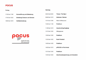 Melden Sie sich gern auch zu unserem neuen Kursformat „POCUS“ an. In kompakten Übersichtsvorträgen sowie zahlreichen praktischen Übungen vermitteln wir Ihnen die präklinischen Aspekte der Sonografie. Der eintägige Kurs findet direkt im Anschluss an den Notarztkurs statt.